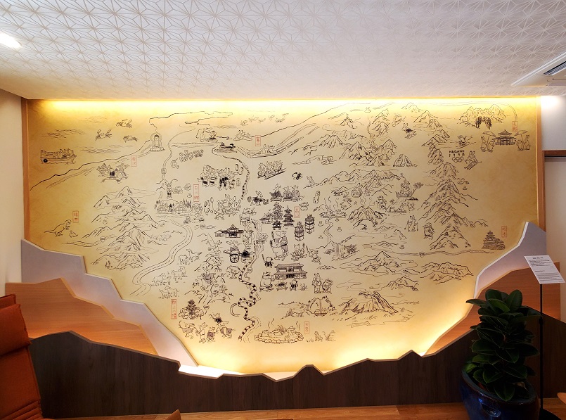 4枚目の画像は高山市を中心にした周辺を『鳥獣戯画』風に描かれた巨大な絵です。これを見るだけでも価値があります!