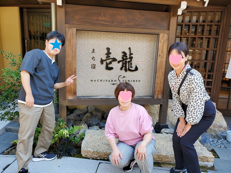 最後にこの2年弱、インスタでもお世話になったスタッフさんとまち宿壱龍さんの看板の前で記念撮影!